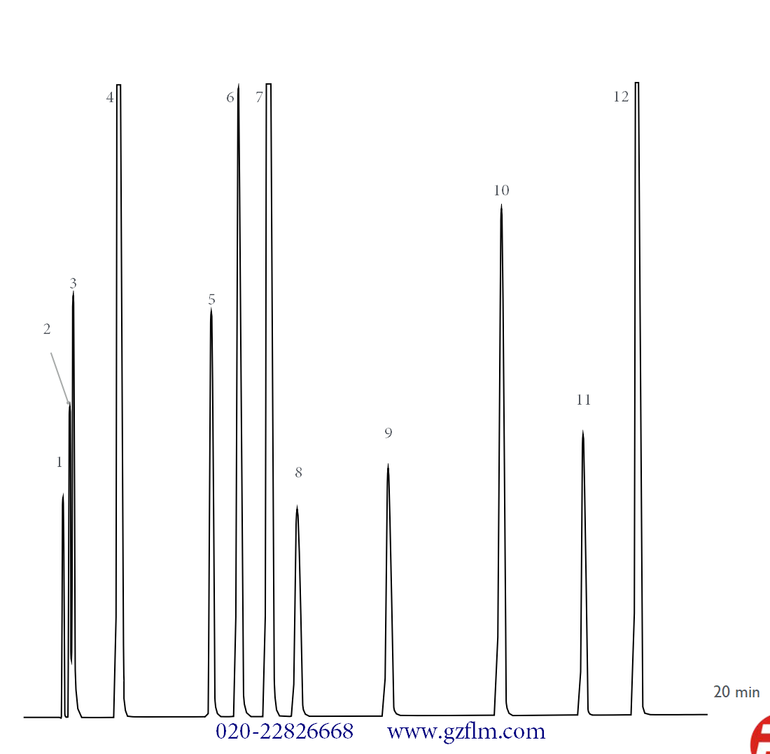 消費(fèi)者在購買食品時(shí)也應(yīng)注意查看食品配料表和營(yíng)養(yǎng)成分表等信息,了解食品中是否添加了二氧化硫或其鹽類作為食品添加劑,并合理控制攝入量。同時(shí),對(duì)于顏色過白、過于鮮亮或有刺激性氣味的食品應(yīng)保持警惕,避免購買和食用可能過量添加二氧化硫的食品。 Sulfur compounds Column: FBX-VOC 2 - 0.53mm, 5.00μm, 30m Conditions: Oven Program: 30°C, 5°C/min, 130°C Carrier Gas: Hydrogen, 3.8mL/min Injector: 200°C Detector: FPD, 200°C Peak identification 1.Hydrogen sulfide 2.Carbonyl sulfide 3.Sulfur dioxide 4.Methanethiol 5.Methyl sulfide 6.Ethanethiol 7.Carbon disulfide 8.2-propanethiol 9.1-propanethiol 10.Thiophene 11.1-butanethiol 12.Methyl disulfide ![]() |