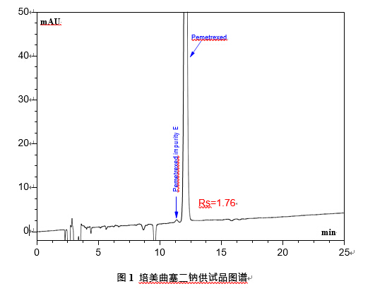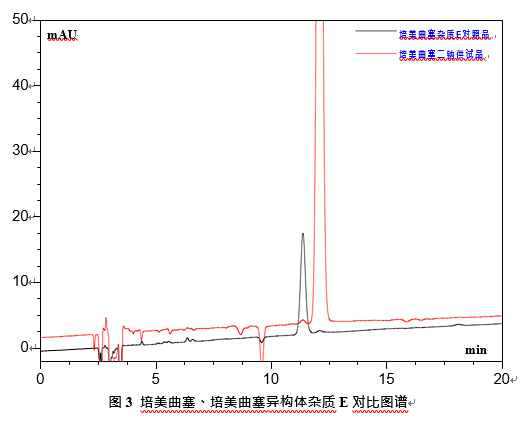 進(jìn)樣體積:20 μL(供試品中培美曲塞濃度 0.24 mg/mL,異構(gòu)體雜質(zhì) E 濃度 0.16 μg/mL)